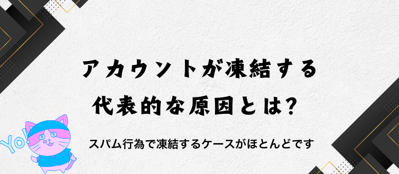 アカウントが凍結する代表的な原因は、スパム行為です。明確に「スパム行為」を実施しているアカウントは、ユーザーからの通報数も溜まりやすいため、凍結する可能性が高いです。
