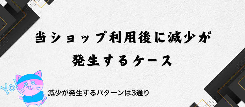 当ショップを利用した後に、減少が発生するケースは以下の3つです。