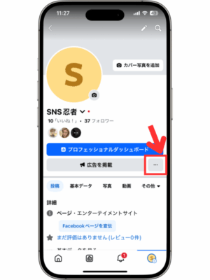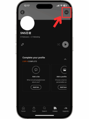 プロフィールページ右上部の「その他マーク」をタップしてください。