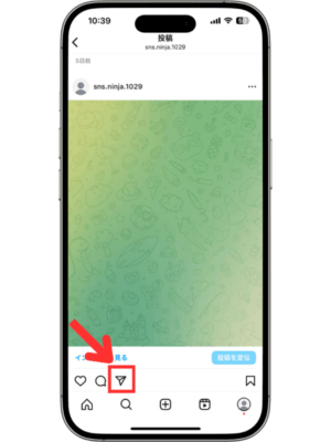 投稿下部の「紙飛行機マーク」をタップしてください。
