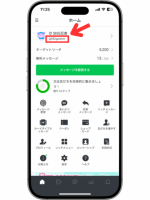 ページ上部のアカウント名下部に、アカウントIDが表示されています。