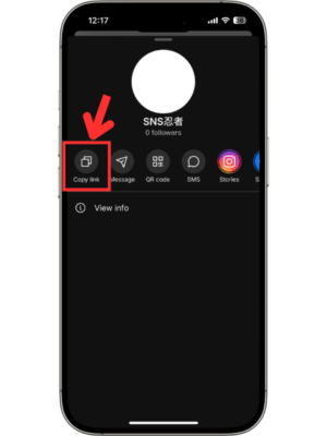 「Copy link」をタップすると、アカウントURLをコピーできます。