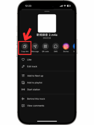 「Copy link」をタップすると、楽曲のURLをコピーできます。