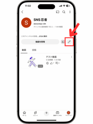 チャンネルページの「鉛筆(編集)マーク」をタップしてください。