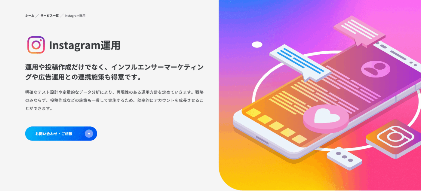 インスタ運用は、継続的な分析と改善が重要です。信頼できる運用代行会社と連携してアカウントを育てることで、ファンの増加や売上アップを実現できるでしょう。