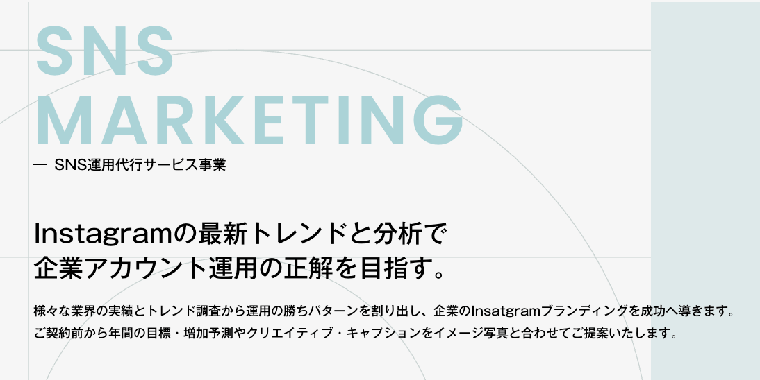さらに、主要事業である「SEOコンサルティング」と「SNSマーケティング」を掛け合わせ、どこよりも高いリーチを狙った運用が可能なため、検索からの流入とSNSでの拡散という両軸での集客を実現できるでしょう。