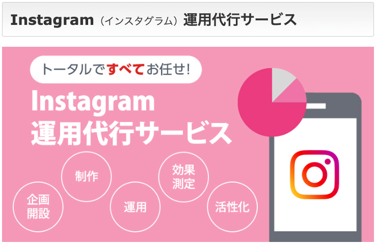 たとえば、インスタ広告を活用したターゲット設定や広告運用の代行、キャンペーンの企画・運用の代行を依頼するなどです。