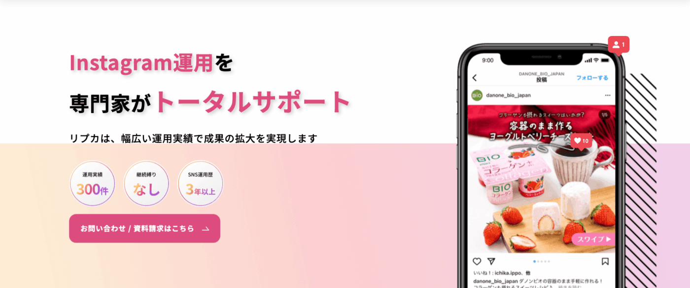 株式会社リプカは、インスタグラム運用の高い専門性を持つプロフェッショナルが初期設定から効果測定までトータルサポートしている企業です。