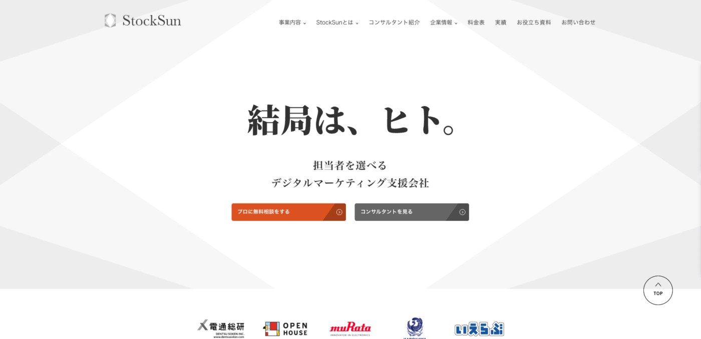 StockSun株式会社は、Webコンサルティングの精鋭集団として知られる会社で、「年収チャンネル」など自社運営チャンネルの成功ノウハウを元にした支援が強みです。