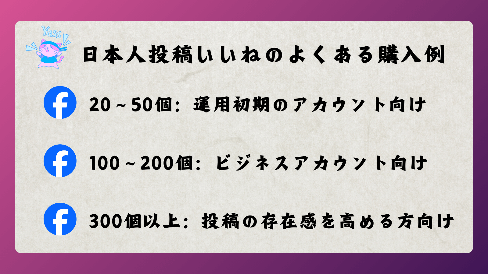 Facebook日本人投稿いいねを買う-いいね購入の専門店SNS忍者