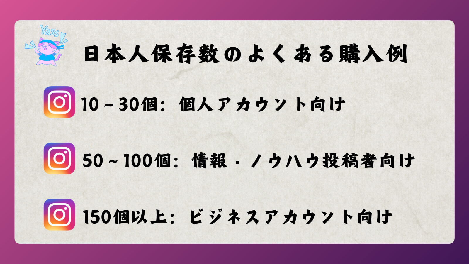 インスタ日本人保存数のよくある購入例