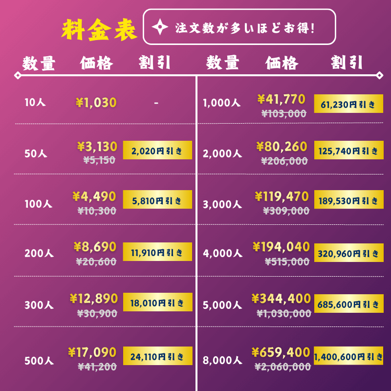 - 1アカウント最大8,000人まで増加可能