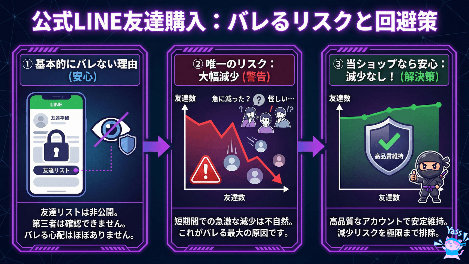 当ショップで公式LINEの友達を購入したことがバレることは基本的にございません。