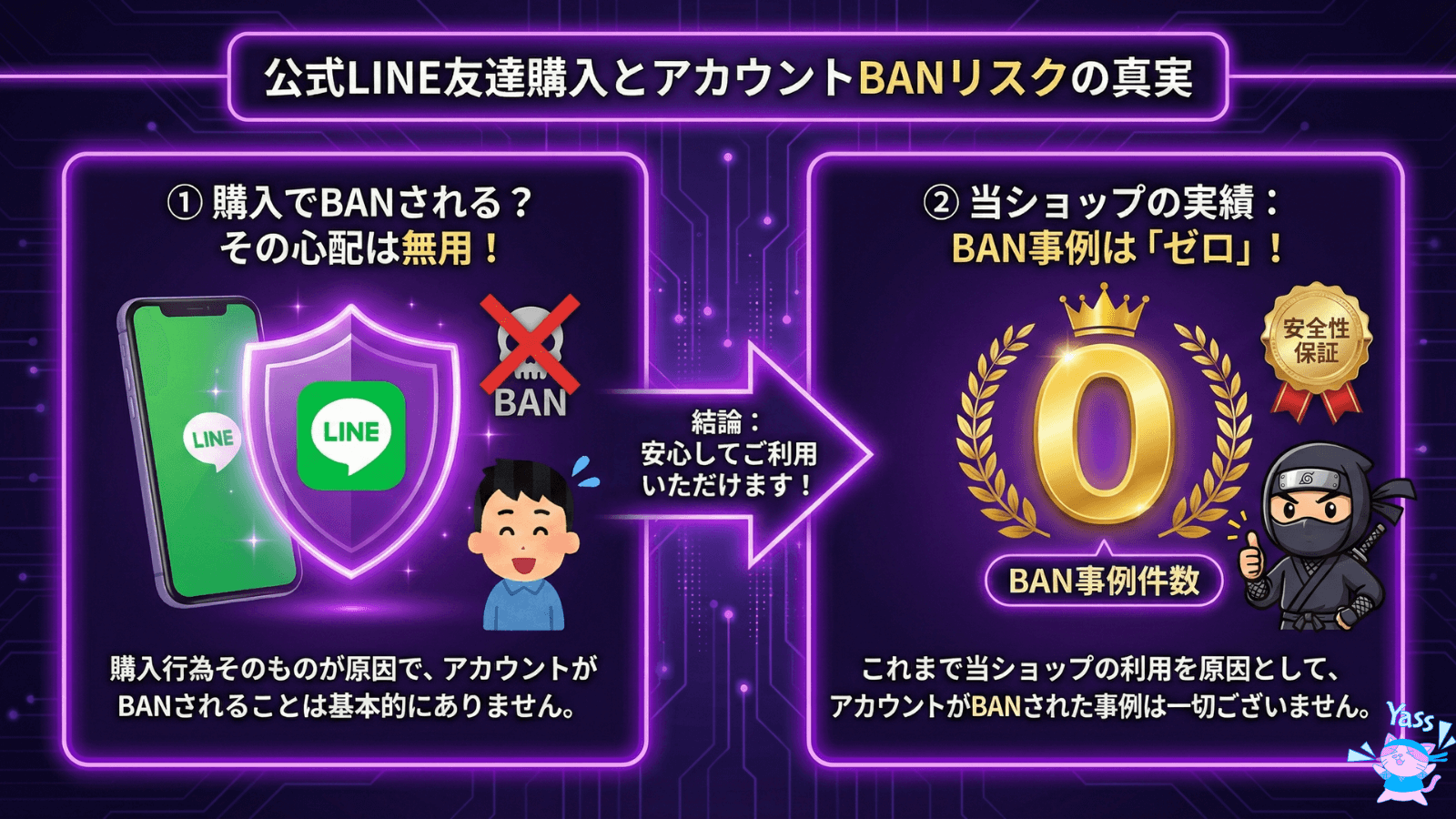 公式LINEの友達を購入しても、アカウントがBANされることはありません。