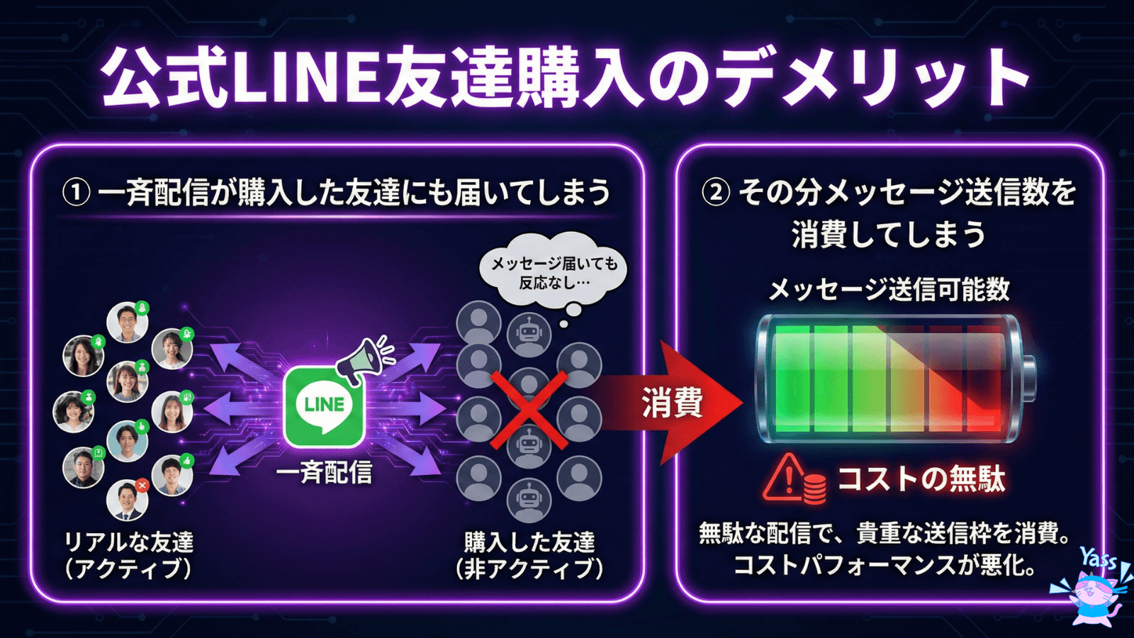 公式LINEを購入するデメリットは、一斉配信が購入した友達にも届いてしまう点にあります。