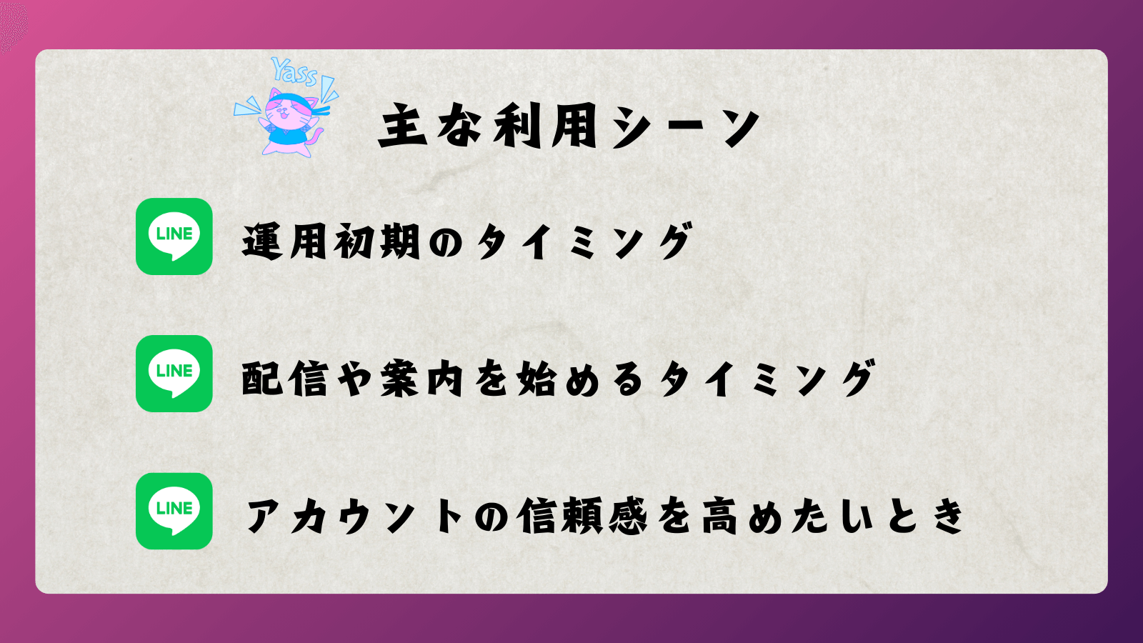 友達数を増やすことで、公式アカウントとしての第一印象を整えやすくなり、初期段階で安心感のあるスタートを切りたい場合に利用されるシーンです。