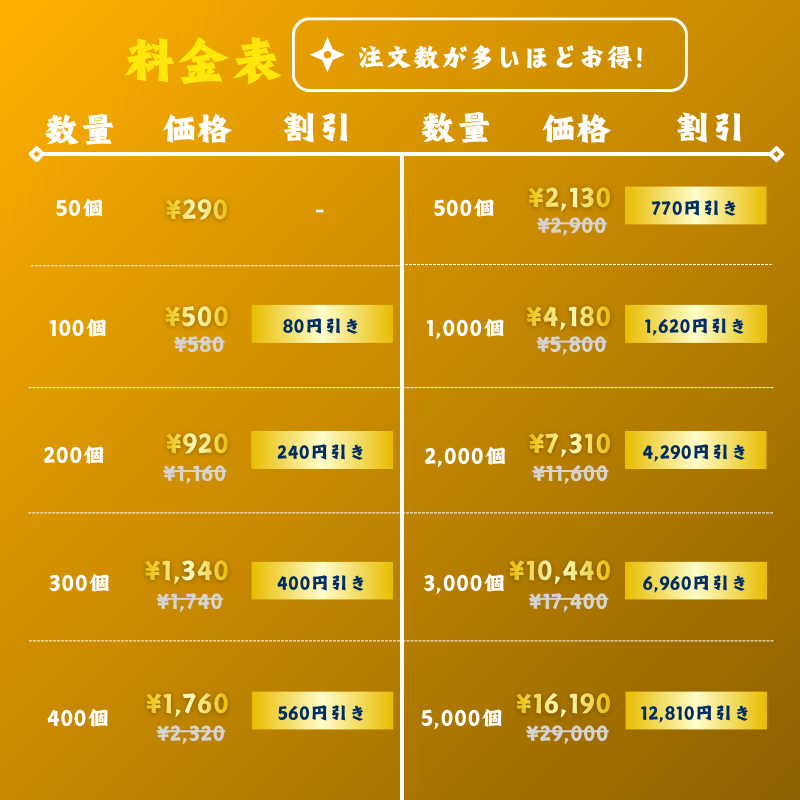- 増加数は柔軟に対応可能※2,200個増加を希望の場合は2,000個と200個をカートに追加