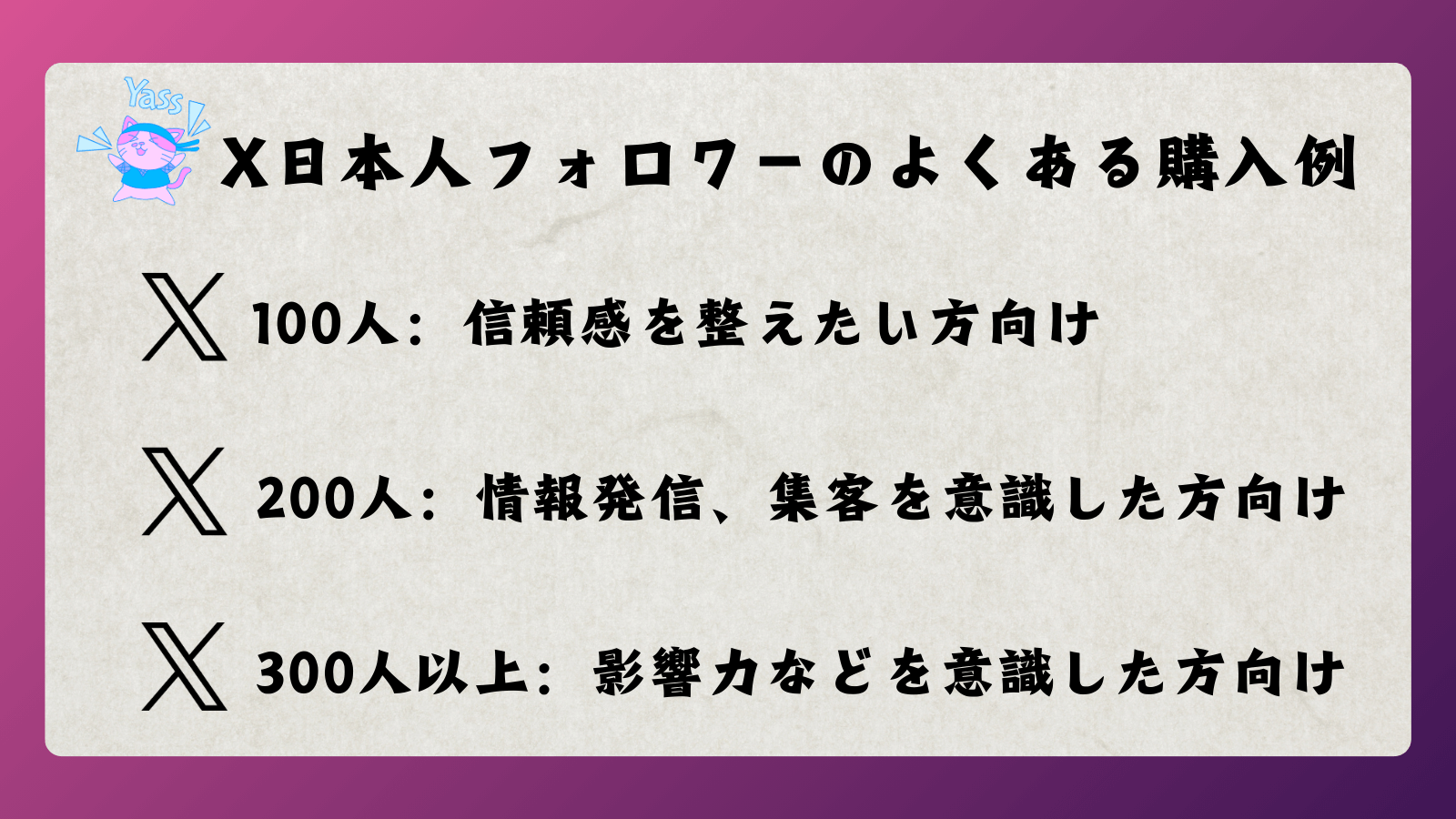 X(Twitter)日本人フォロワーのよくある購入例