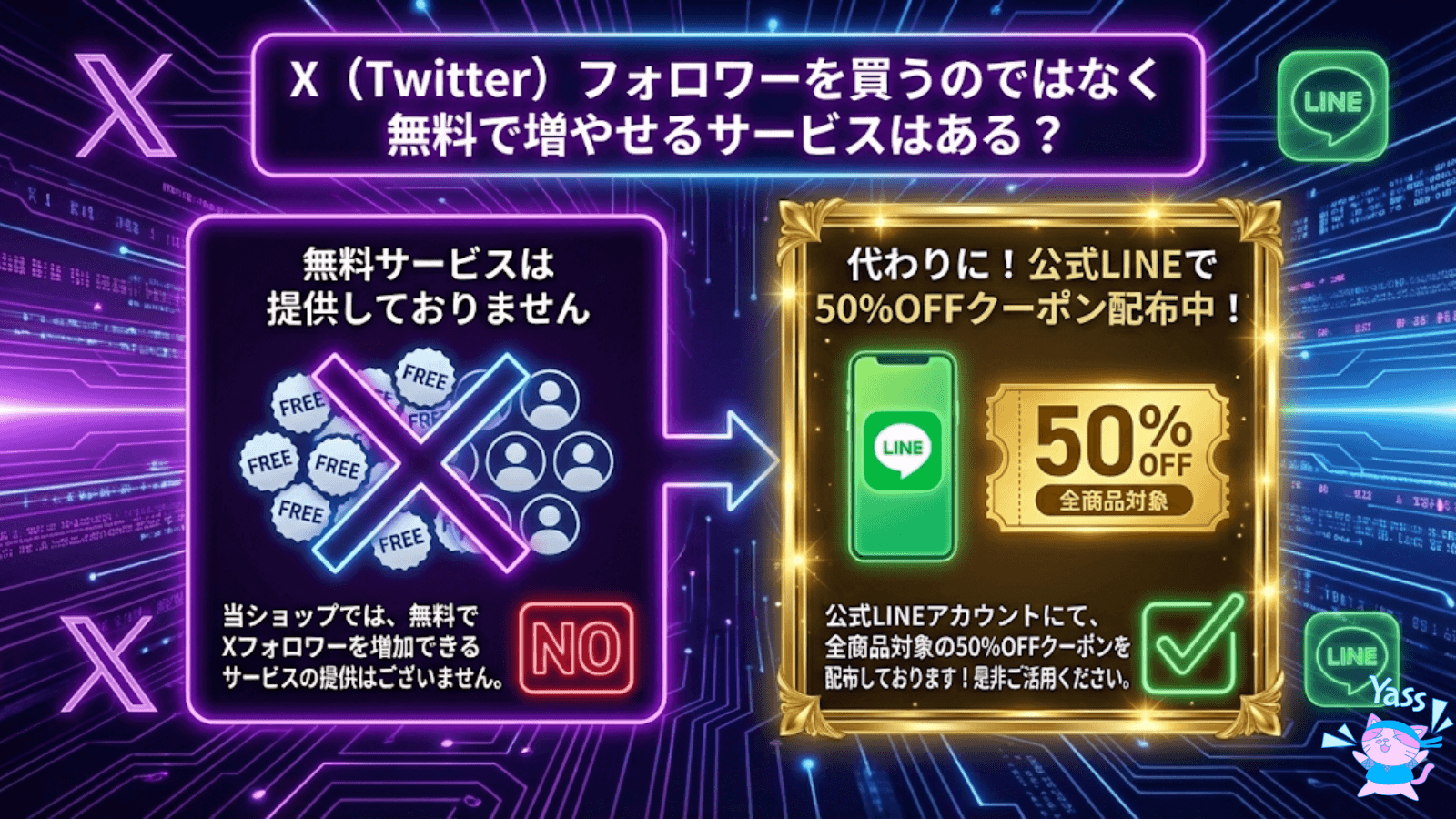 当ショップでは無料でX(Twitter)のフォロワーを増加させられるサービスはご用意しておりません。