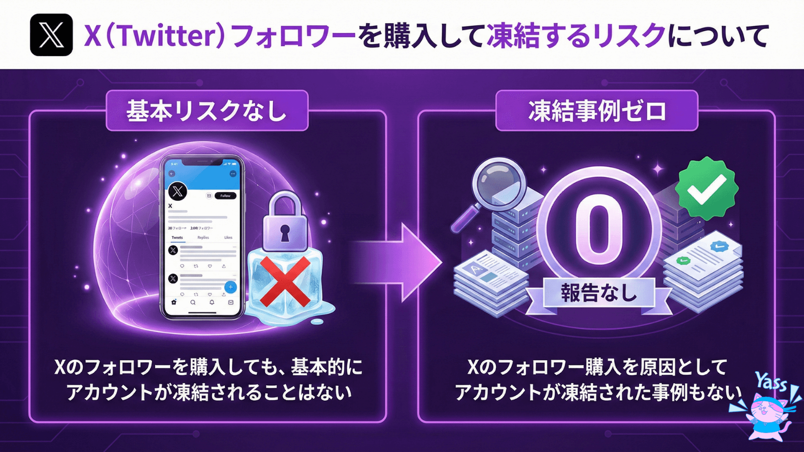 実際に当ショップでX(Twitter)フォロワーをご購入いただいたお客様の中で、フォロワー購入が原因でアカウントが凍結されたという事例は、これまで一度も報告されておりません。
