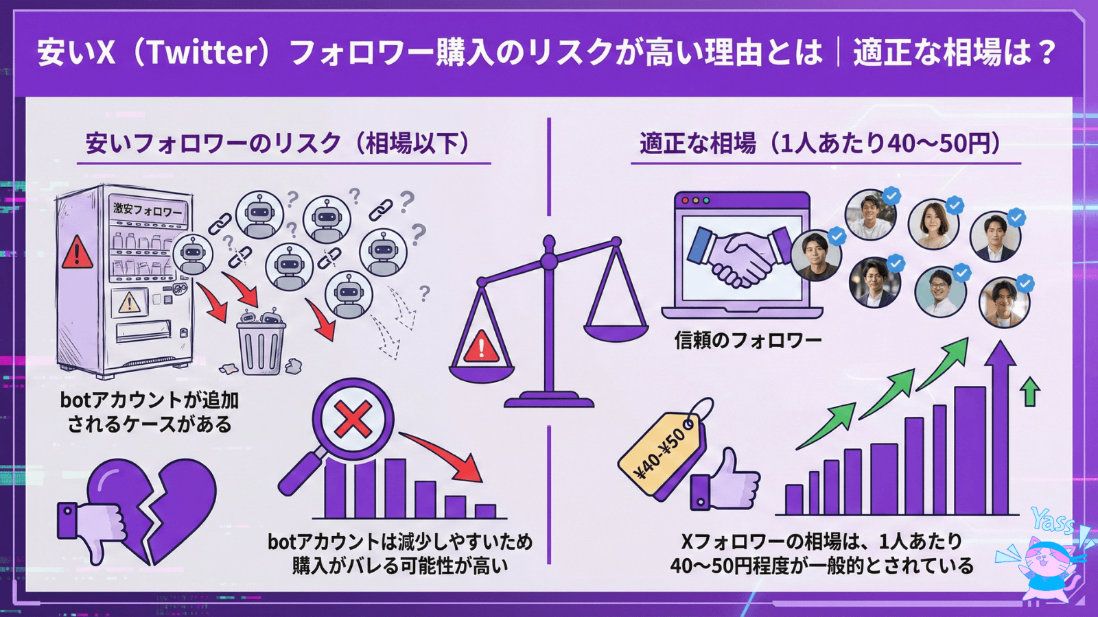 安いX(Twitter)フォロワー購入のリスクが高い理由とは|適正な相場は