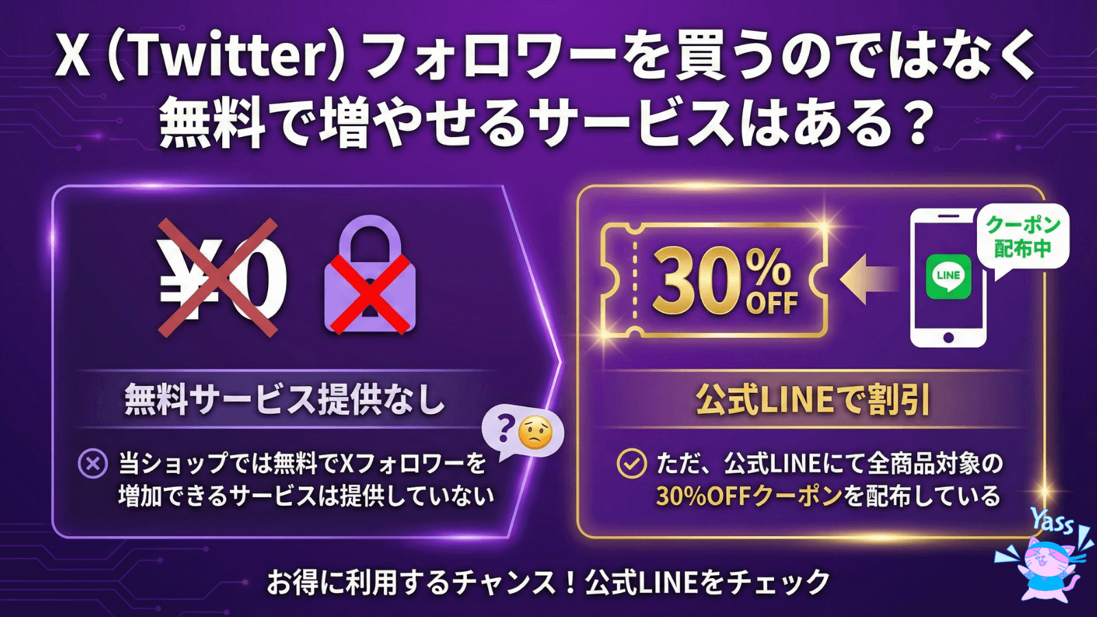 当ショップでは無料でX(Twitter)のフォロワーを増加させられるサービスはご用意しておりません。