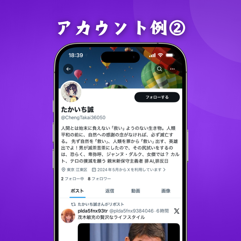 X(Twitter)日本人RTを購入の際は、必ずご確認ください。