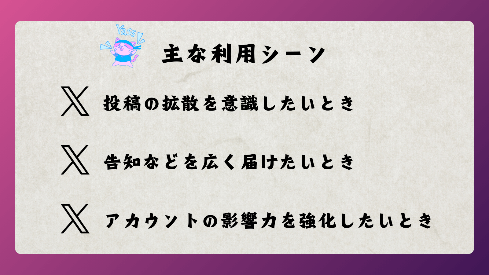 発信力を意識した運用をしているアカウントで利用されるシーンです。
