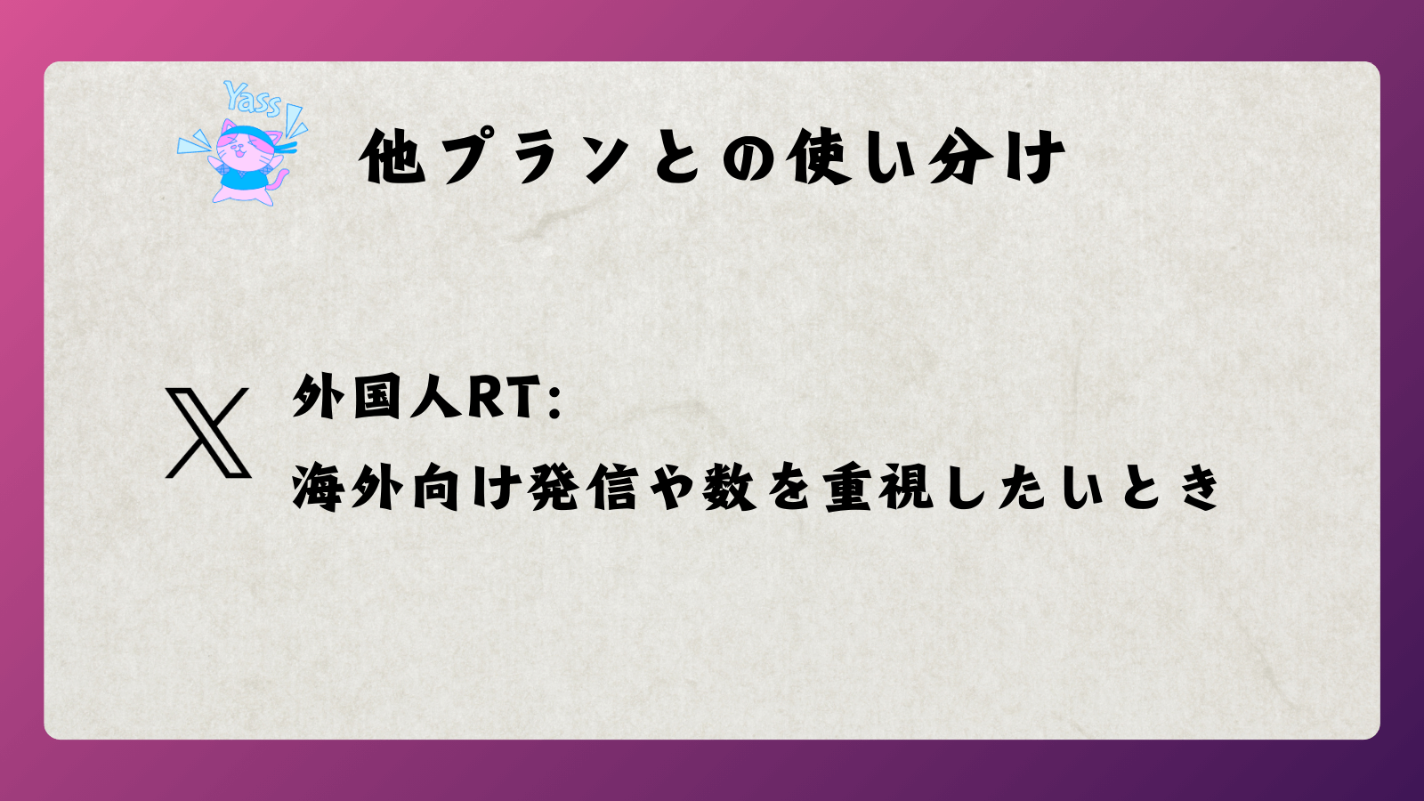 Xのリツイートには、日本人リツイート以外にも関連プランがあります。