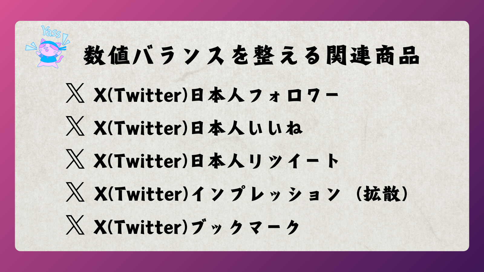 » X(Twitter)インプレッション(拡散)購入はこちら