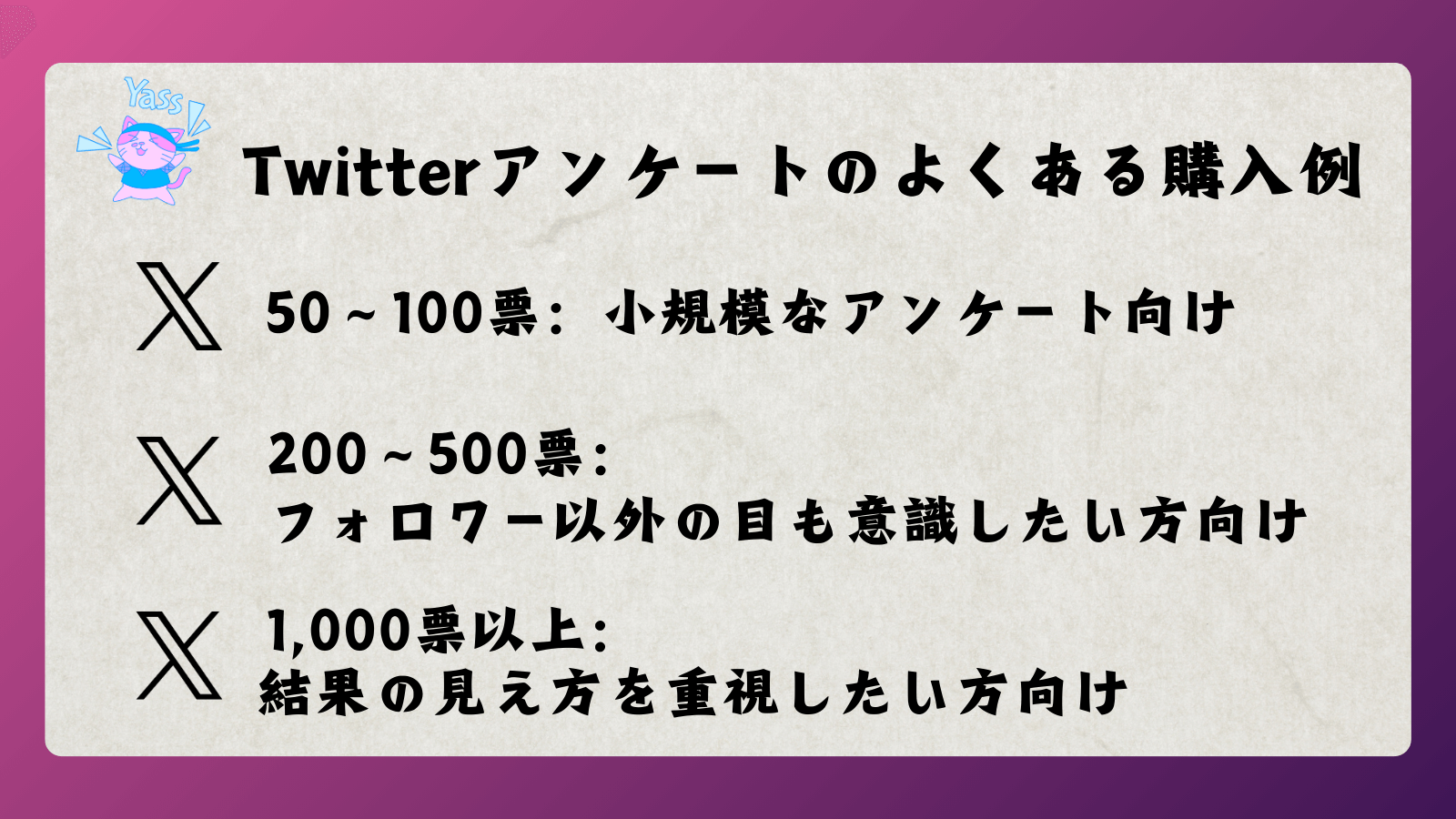 X(Twitter)アンケート投票のよくある購入例